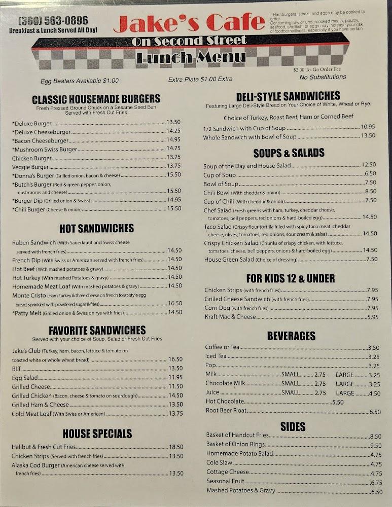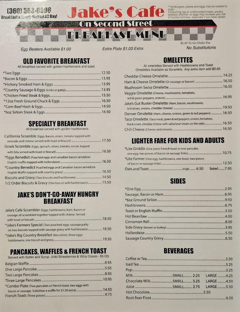 Welcome to Jake's Cafe on 2nd Street, your go-to spot for delicious American cuisine in Snohomish, WA. Located at 709 2nd St, our café offers a cozy atmosphere perfect for breakfast, brunch, and lunch. Enjoy our excellent coffee and local specialties in a relaxed setting, complete with outdoor seating and takeout options. We pride ourselves on fast service and a welcoming environment, with amenities like wheelchair accessibility and kid-friendly menus. Whether you're dining solo or with a group, Jake's Cafe is the ideal choice for a satisfying meal. Join us for a delightful dining experience today!